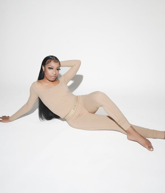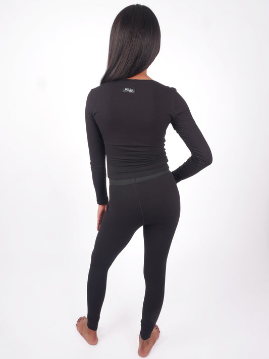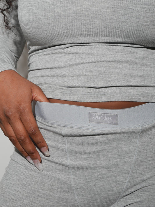 Cotton Ribbed Long Sleeve Set - Light Heather Grey